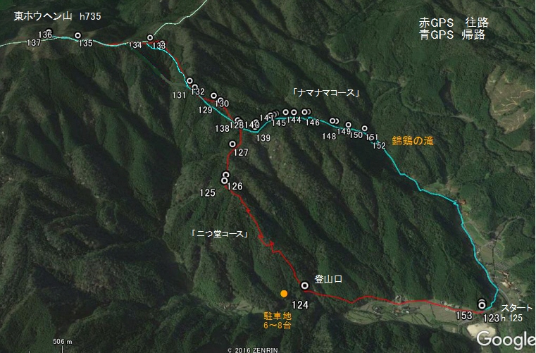■ 2017/04/30 (日) 単独、晴れ。東鳳翩山(ホウベン) 帰路を「ナマナマコース」にとり、「錦鶏の滝」を見に行くことにしました。