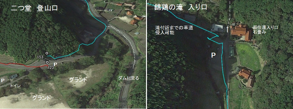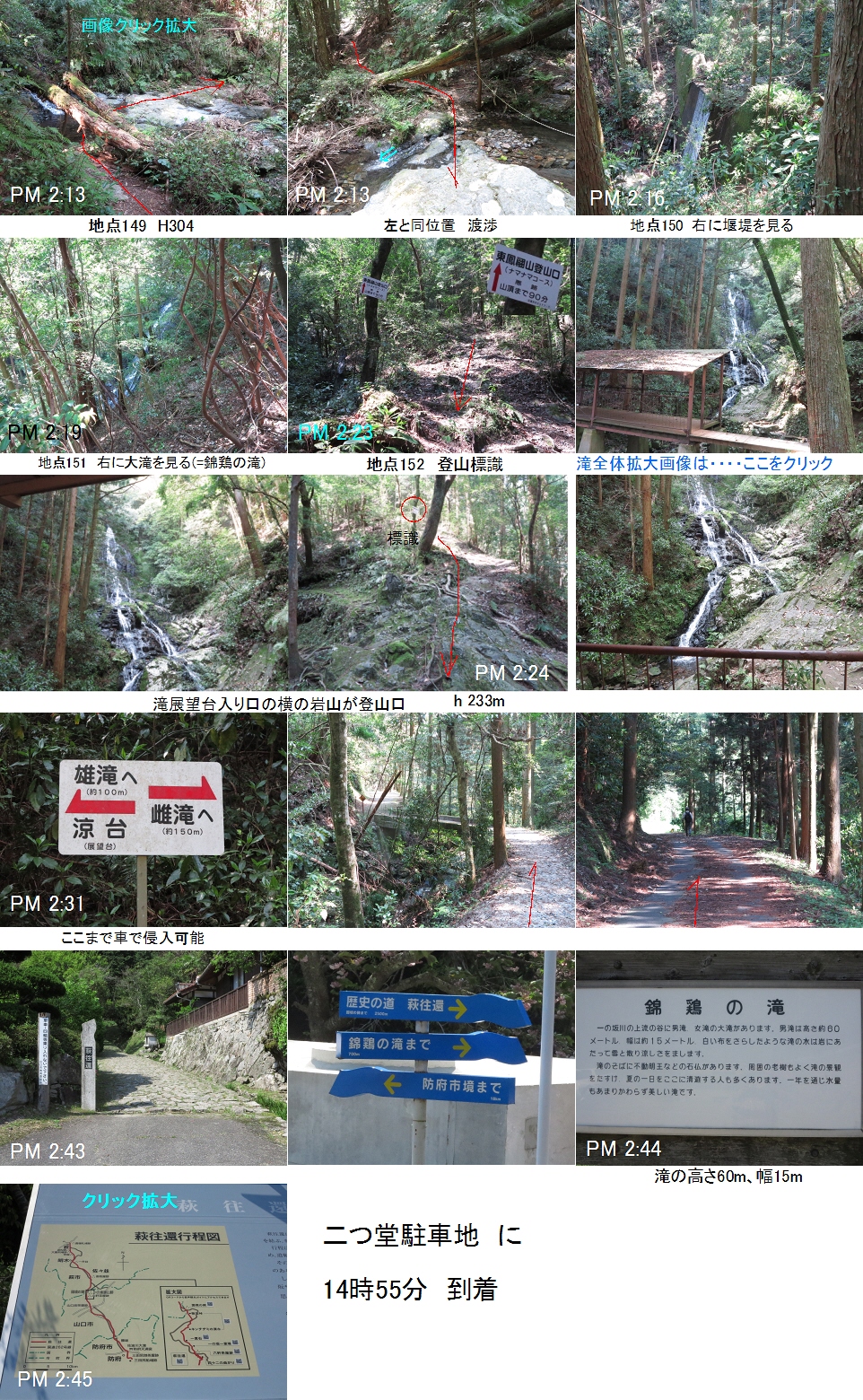 ■過去、「錦鶏の滝」から二つ堂コースへ行ったことがありましたが、思い出としては本道の二つ堂のーコースの分岐に行くまで、非常に疲れたことを思い出に残っております。この度は下りで降りてみることにしました。確かにその道は細道ではありますが、道は明確であり、分岐も無く、赤テープ、布切れ、等が各所にあり全く迷う道ではありません。特徴はコース名のように、川に沿って、渡渉を繰り返して左右の山際に行ったり、小滝を見てたりしながら降りる、自然美豊かなコースです。