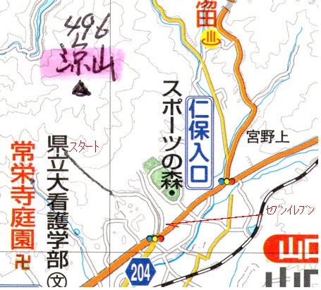 地図には載っていませんが、登頂時間、約1時間で、標識もあり、大変歩きやすい山です。