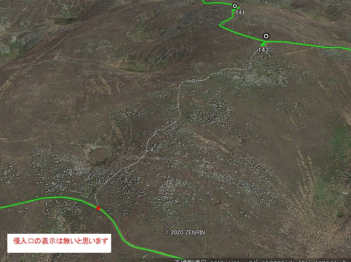 ■赤○〜142 の道は石灰岩の露出がおおいところです。しかし赤○の侵入口が良くわからないので注意。