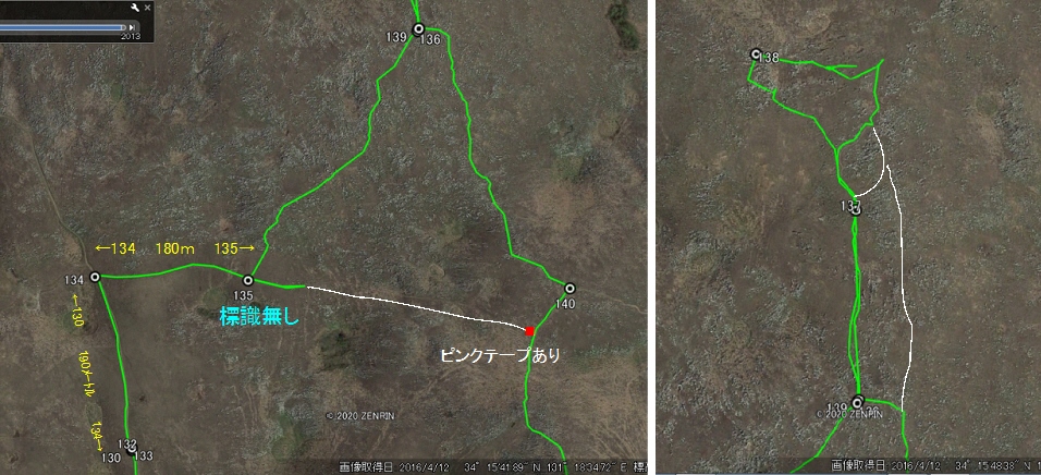 ■ 注意点 地点130→134は約190mあります。また134→135は約180mあります。