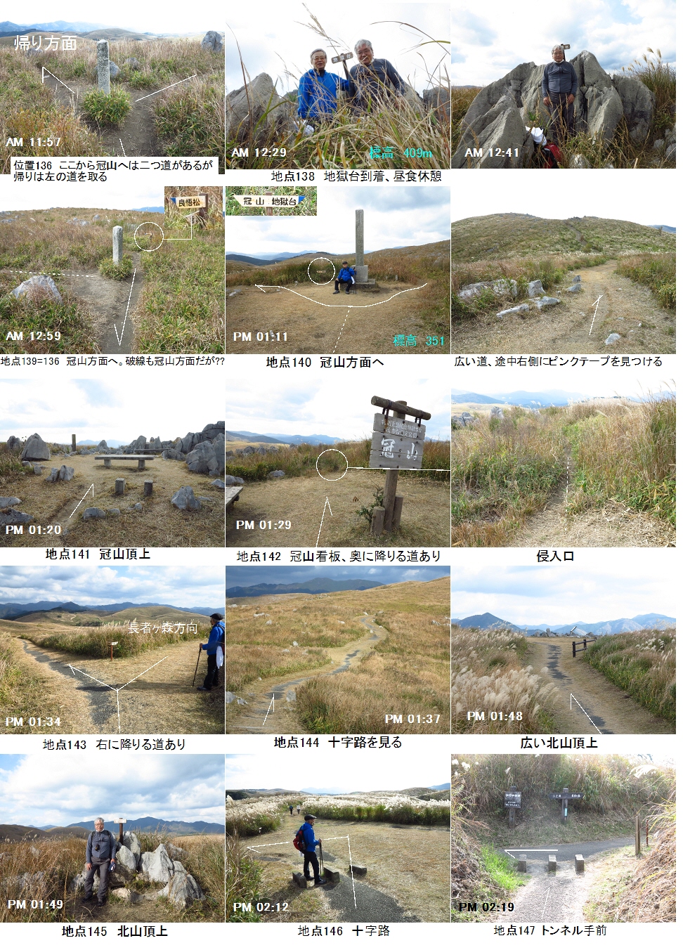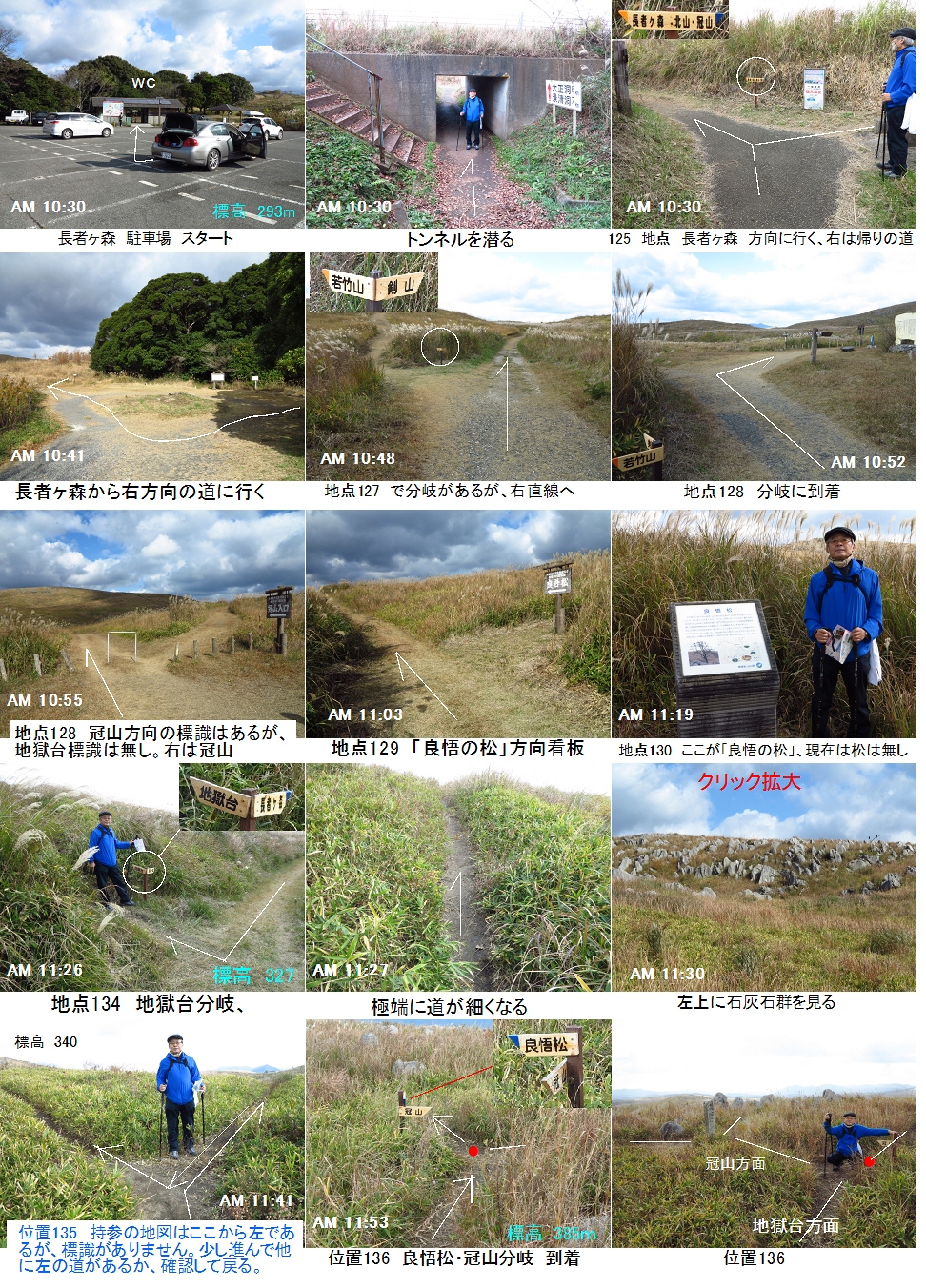 ■2020/11/28、晴れ、2人 地元県の秋吉台 地獄台 409mに初めて行ってきました。道順は長者ヶ森駐車場→良悟の松→地獄台409m→冠山377m→北山368m